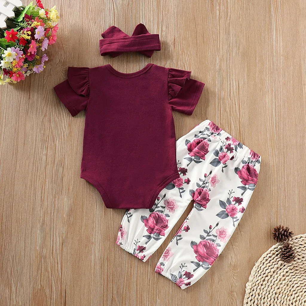 Buy CHAMSGEND Toddler Baby Girls Cotton blend Short Sleeves Romper Tops+Floral Pants+Headbands Set Outf Right Here and Right Now Just for USD US $9.12, Price will be rise up at any time without notification and I cant guaranted that the stock is still available tommorow or next hour. So Please Save It Now!